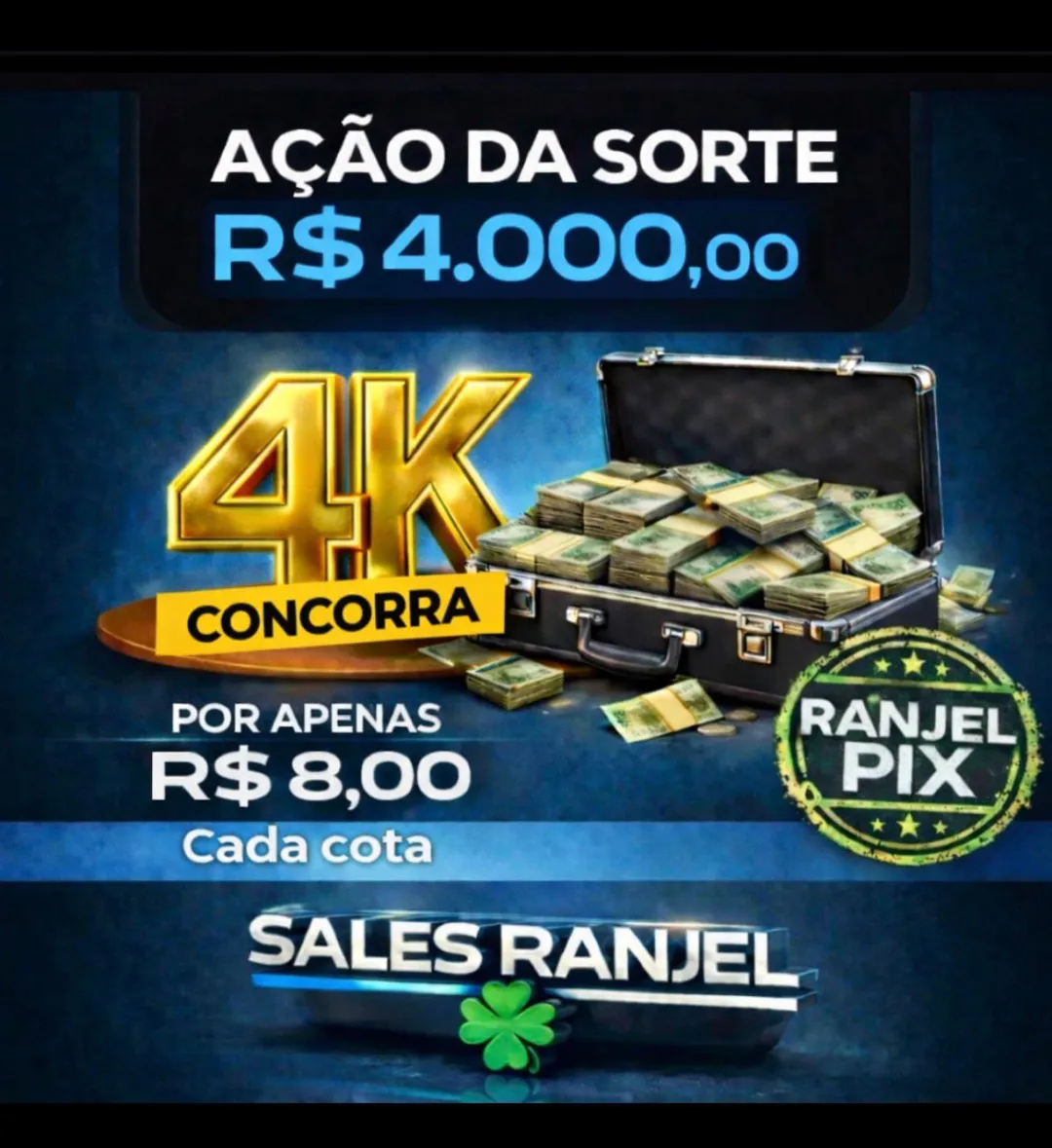 Concorre com 2 númerosRANJEL PIX 4K NA SUA CONTA